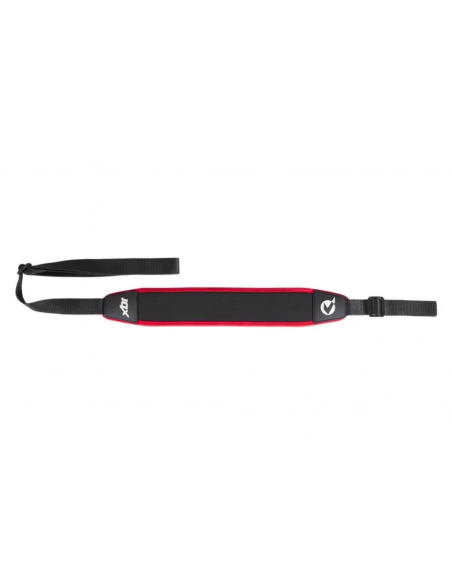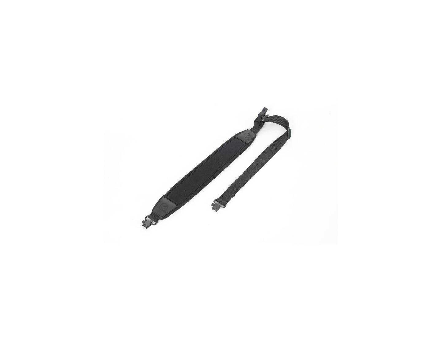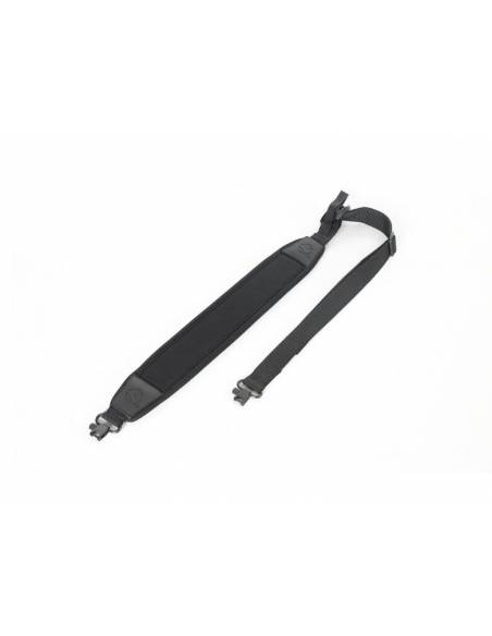 Correa de Neopreno, porta carabinas, en color Negro con pasador metálico y especial textura antideslizamiento para asegurarla en el hombro.