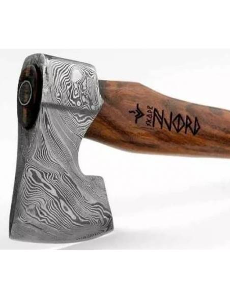 El Hacha Njord Skade damasquinada es una pieza artesanal que combina funcionalidad y belleza, diseñada para usuarios exigentes que valoran tanto el rendimiento como el estilo. Fabricada con acero damasquinado de alta calidad, su hoja presenta un acabado distintivo que ofrece no solo una gran resistencia al desgaste sino también un atractivo estético único. Este hacha proporciona cortes precisos y eficaces, ideal para trabajos en exteriores como acampada, preparación de leña y tareas de supervivencia.