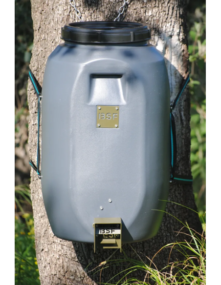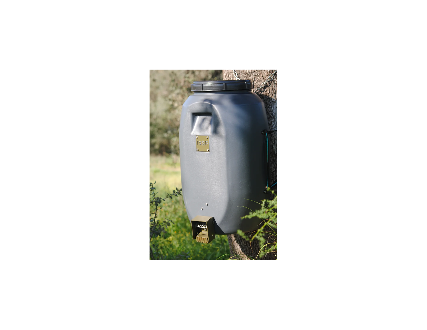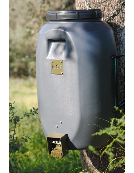 El bidón comedero de 60L con trampilla y anillas es la solución ideal para alimentar animales de manera práctica y eficiente. Su capacidad de 60 litros permite un almacenamiento prolongado de alimento, mientras que la trampilla facilita la dispensación controlada. Las anillas incorporadas ofrecen comodidad para su transporte y fijación en distintos entornos. Fabricado con materiales resistentes, garantiza durabilidad y facilidad de limpieza, siendo perfecto para granjas, cotos de caza o uso doméstico.