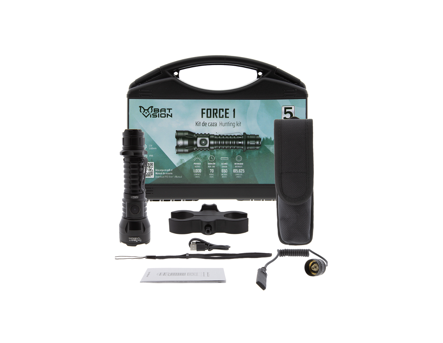 Linterna Bat Vision Force One de 1000 lúmenes. Potente, resistente y con luz ajustable para actividades al aire libre.
