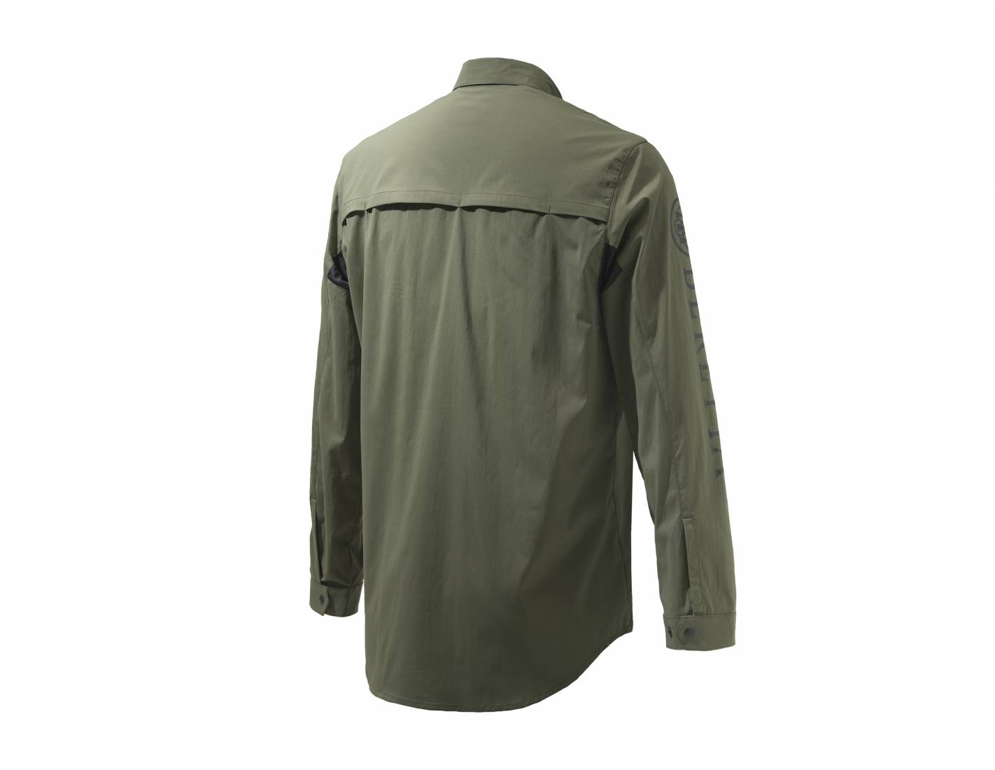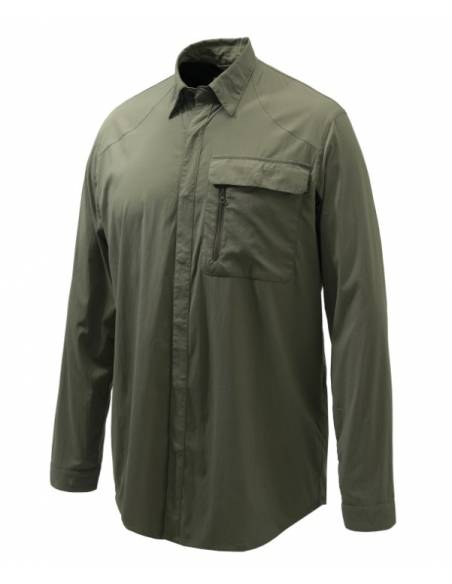 Camisa de caza Beretta Storm verde, cómoda, resistente y funcional, perfecta para largas jornadas en el campo.