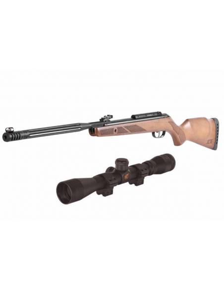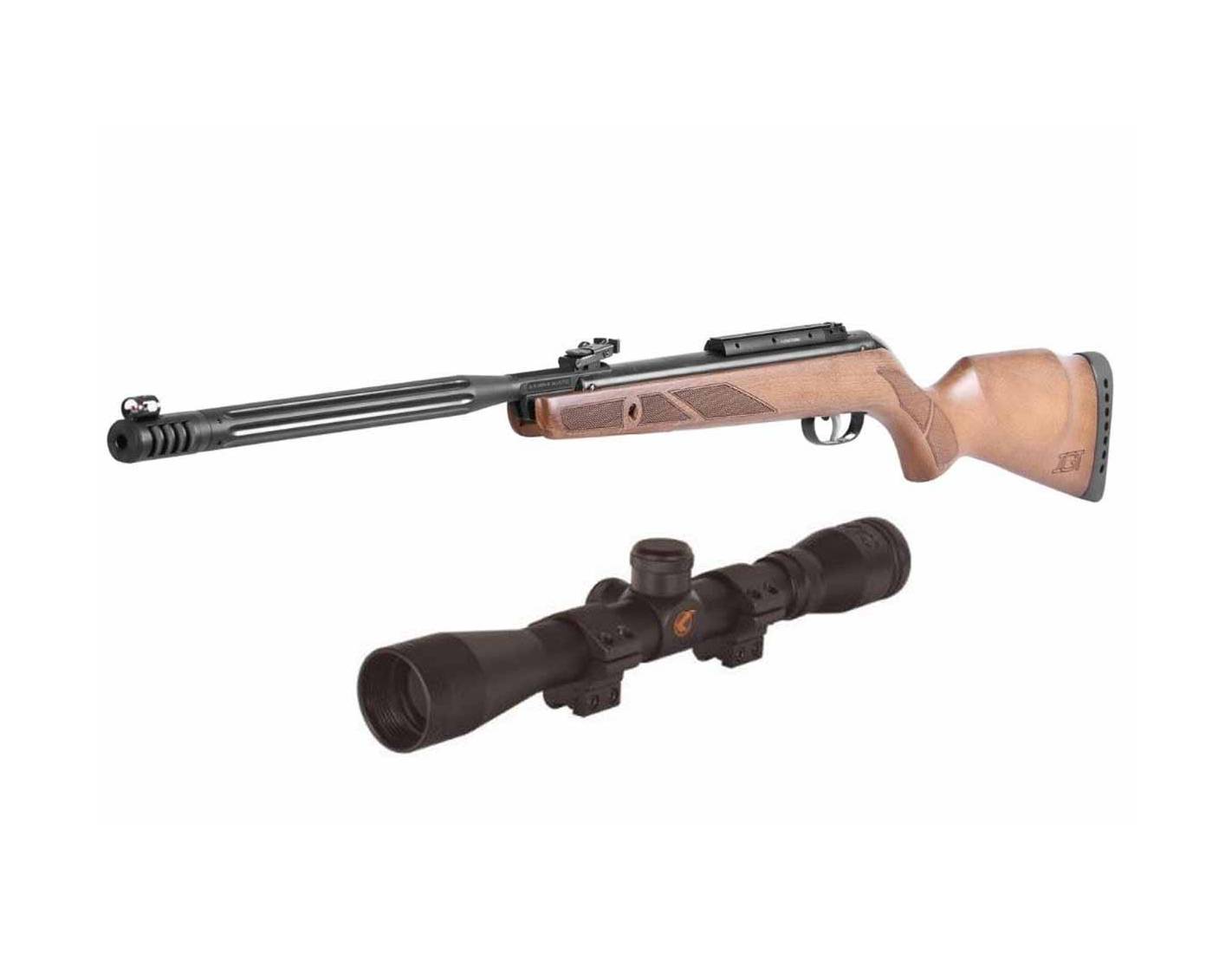 Carabina Gamo Hunter Maxxim IGT cal. 4,5 mm con culata de madera, pistón de gas y visor 4x32 incluido. Estilo clásico, precisión moderna y disparo silencioso.