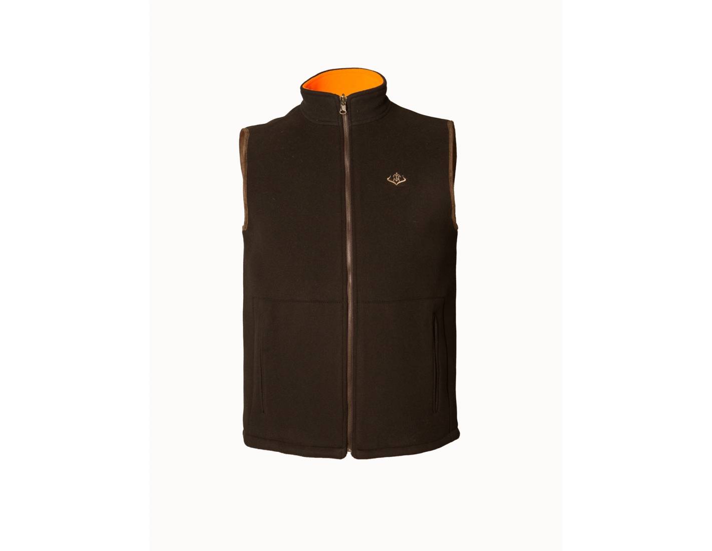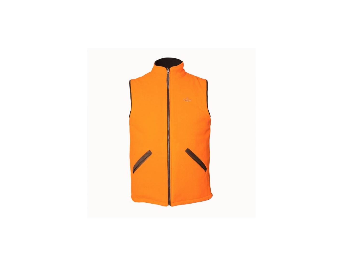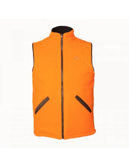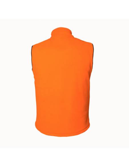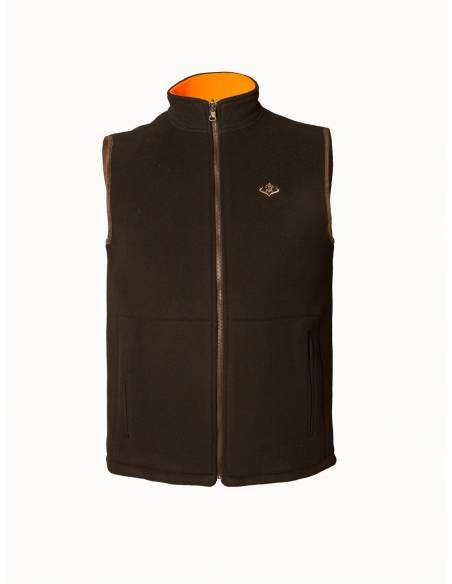 Chaleco polar reversible de mujer marrón/naranja, cálido, ligero y funcional. Perfecto para caza o actividades al aire libre.