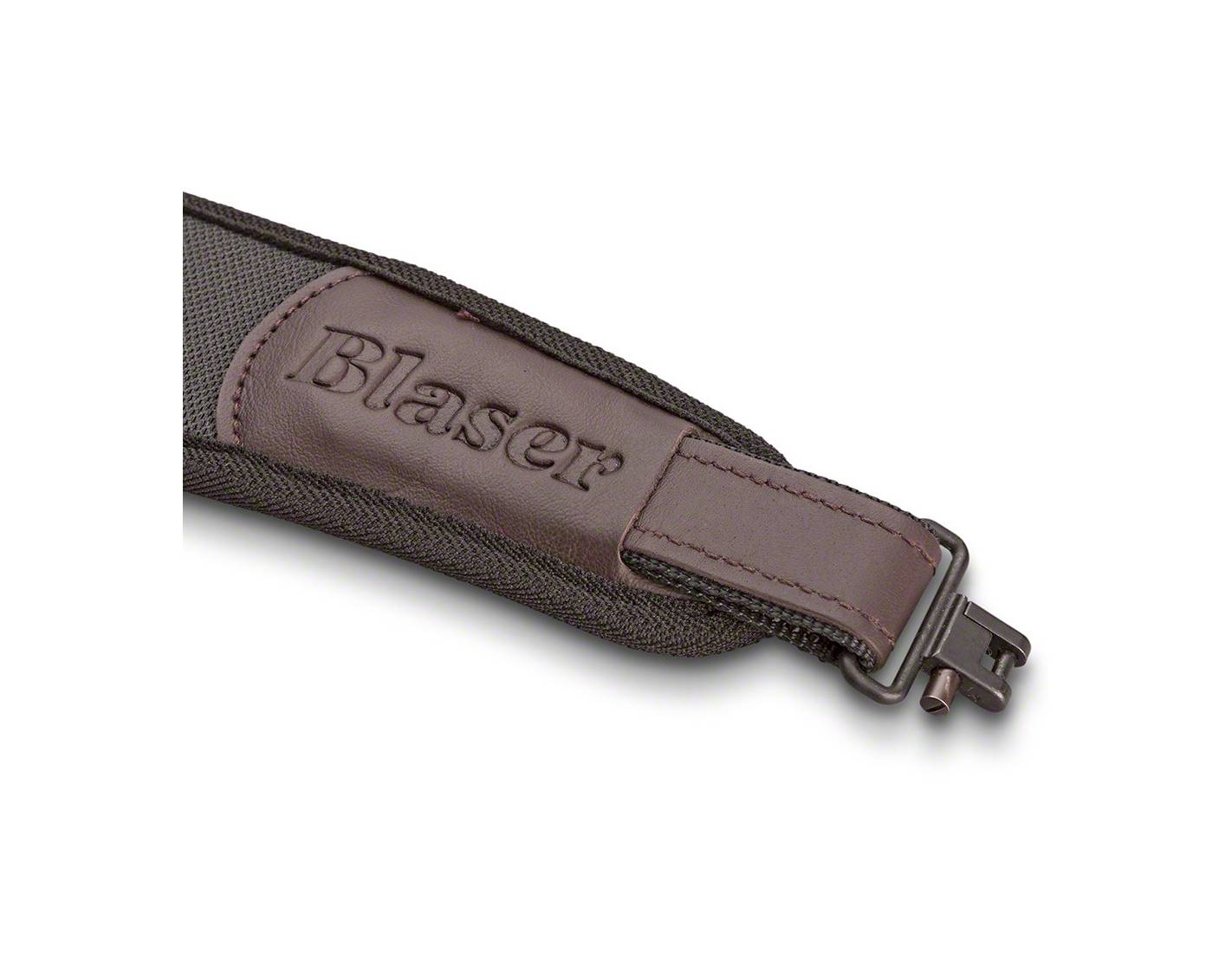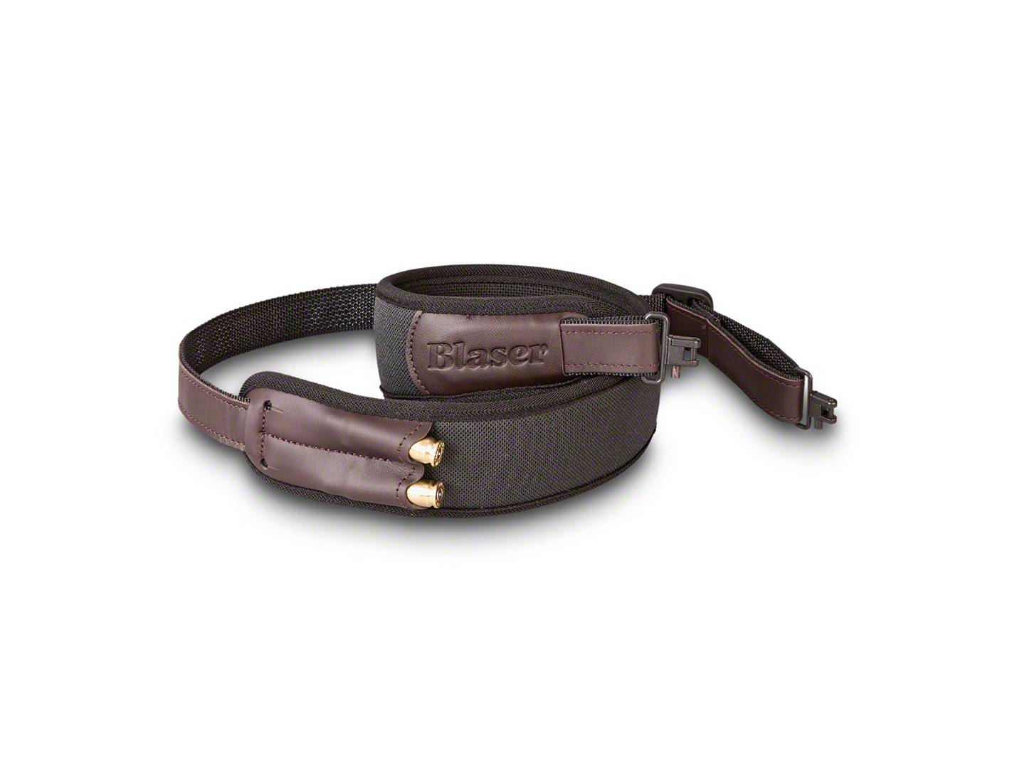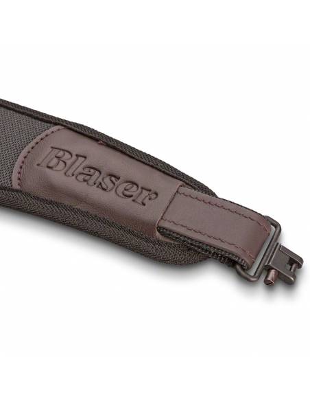 Correa portafusil Blaser de neopreno, antideslizante y cómoda. Con enganches rápidos y diseño ergonómico para jornadas de caza prolongadas.