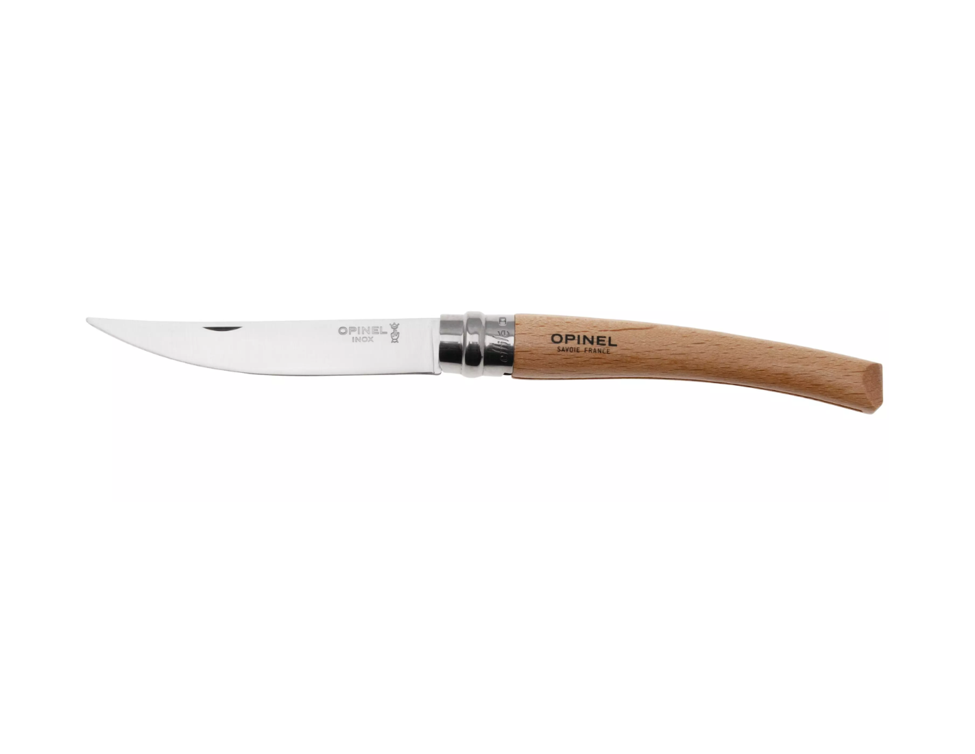 La Opinel Effilé nº 10 de madera de haya es una navaja elegante y práctica. Su hoja estrecha la hace ideal para tareas como el fileteado de pescado y el corte de rodajas finas. Se trata de una navaja elegante que podrás llevar a cualquier parte, pero que también será un elegante complemento en la mesa del comedor. Esta navaja está fabricada en Francia.