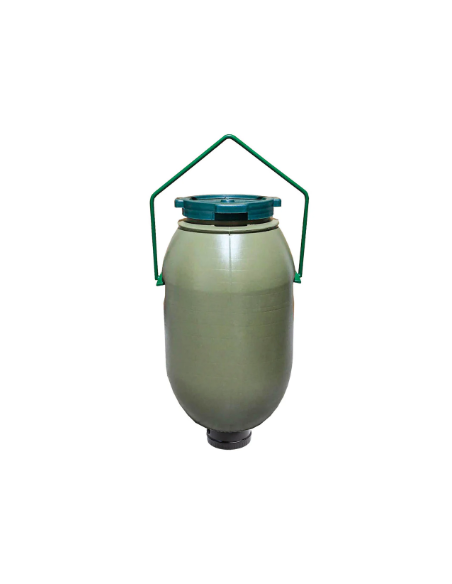 Bidón Moultrie 60L con dispensador automático programable. Ideal para cebado de fauna en cotos de caza. Resistente y de gran capacidad.