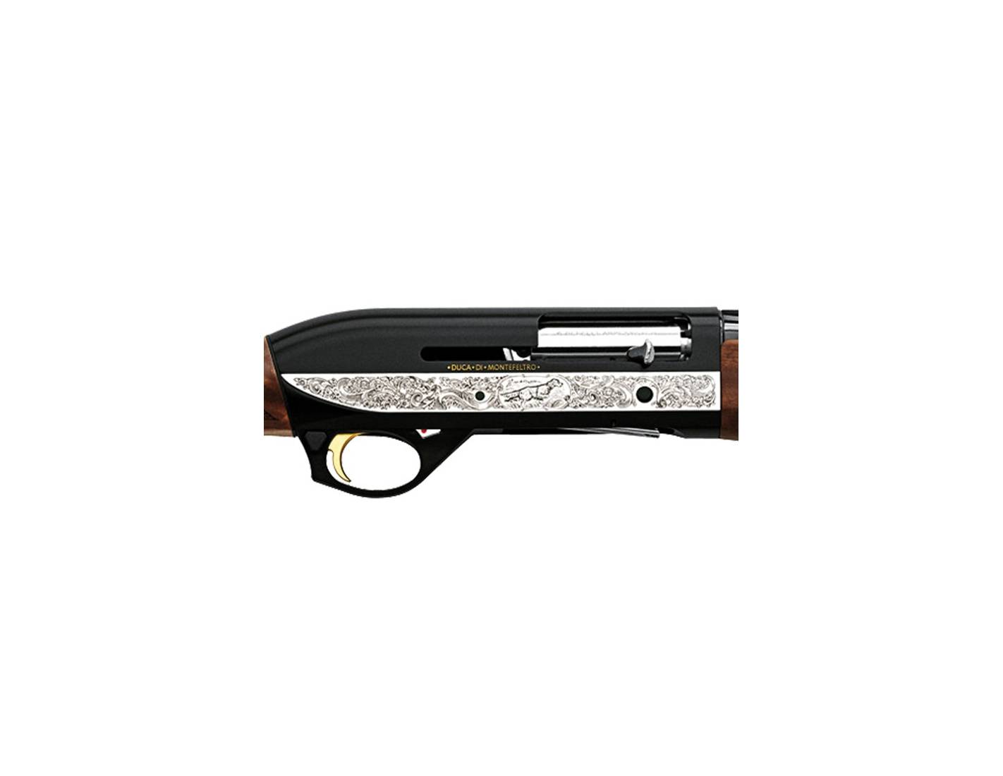 La escopeta semiautomática Benelli Duca di Montefeltro para zurdos destaca por su diseño elegante, precisión y fiabilidad absoluta. Esta reconocida repetidora combina mecánica inteligente con acabados de alta gama y detalles cuidados, como el gatillo dorado y el picado antideslizante en la empuñadura. Su sistema de funcionamiento inercial garantiza una operación suave y eficiente, con un mantenimiento sencillo.