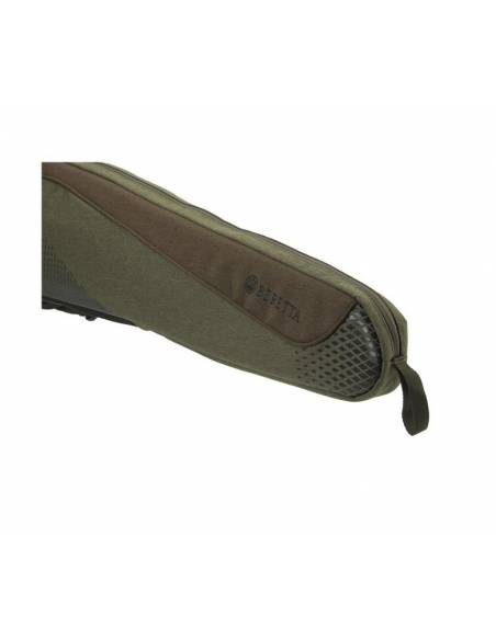 Funda Beretta Hunter con acolchado interior, zonas exteriores reforzadas, cremallera con cierre, correa ajustable y bolsillo lateral. Protección y comodidad para tu rifle.