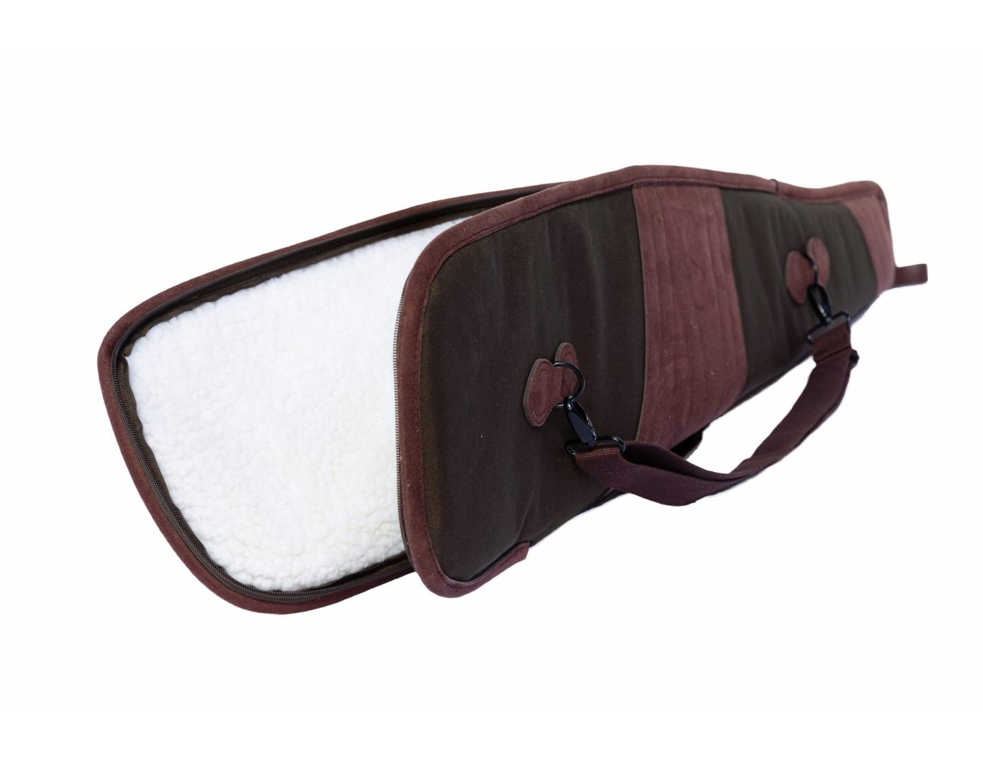 El interior cuenta con relleno protector de poliuretano de 1 cm y un forro tipo borreguillo, que aseguran una protección óptima contra golpes y arañazos. Su diseño incluye una cinta portafusil de nylon de 4 cm de ancho, cómoda y resistente, ideal para un transporte seguro.