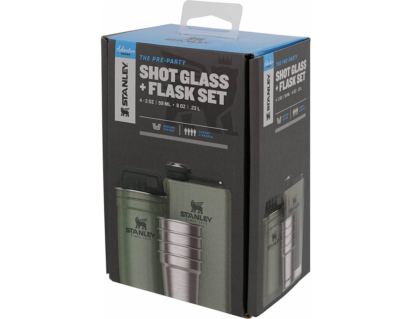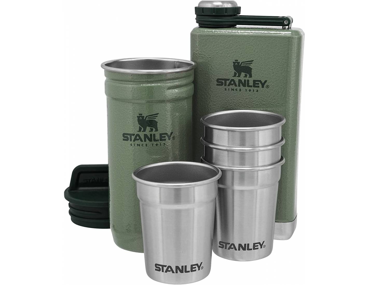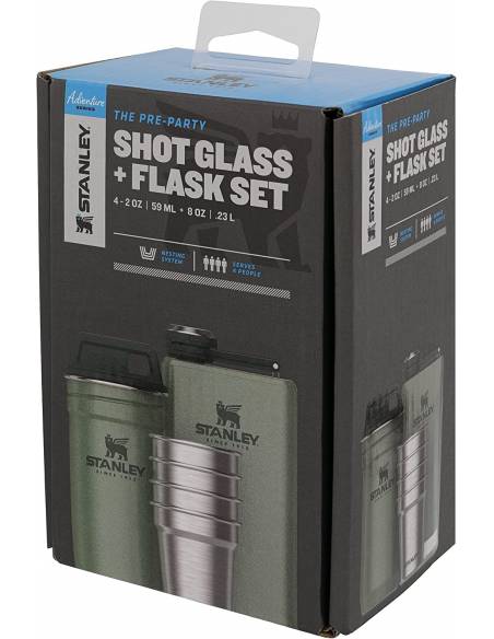Set de 4 Vasos + Petaca Adventure Verde, resistente y elegante. Ideal para camping, caza o escapadas al aire libre.