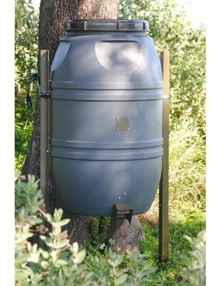 Bidón de 220 litros con trampilla para acceso rápido y eslinga para fácil transporte y manejo seguro.