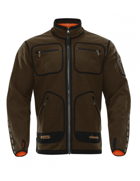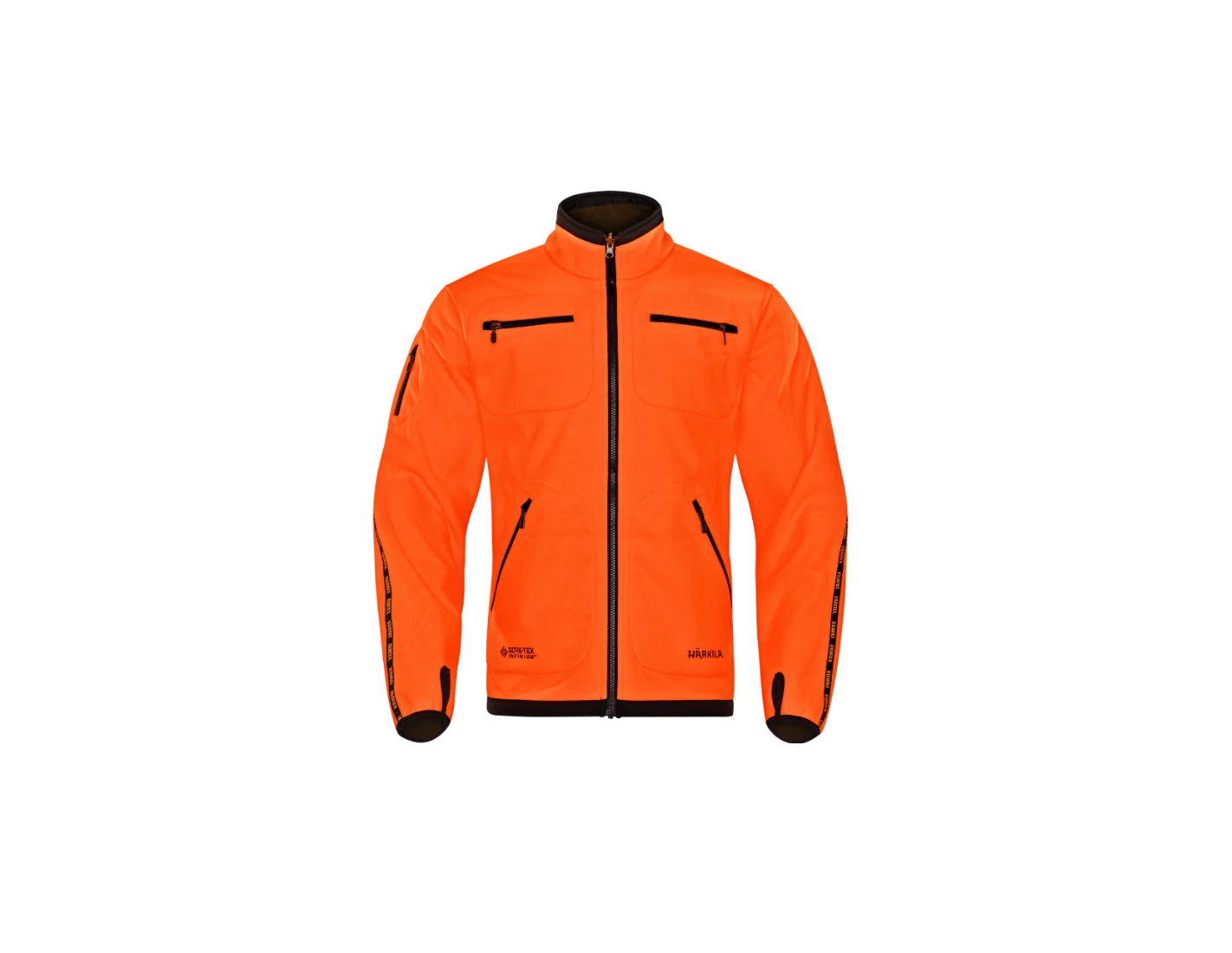 La chaqueta polar Kamko está fabricada con un suave tejido de microfibra de alta elasticidad y, al ser reversible, te ofrece efectivamente dos chaquetas en una. La chaqueta tiene una membrana GORE-TEX INFINIUMTM WINDSTOPPER, para mantenerte caliente, incluso con viento frío. También tiene un revestimiento que repele el agua y la suciedad. La chaqueta polar Kamko tiene dos bolsillos en el pecho y dos bolsillos delanteros inclinados, con espacio para la radio, el móvil y otros objetos. También hay un bolsillo con cremallera en la manga superior derecha. La chaqueta polar tiene un cuello alto, cremallera bidireccional y puños elásticos con orificios para los pulgares, así como un ajuste en el dobladillo inferior para mantener el aire frío fuera.
