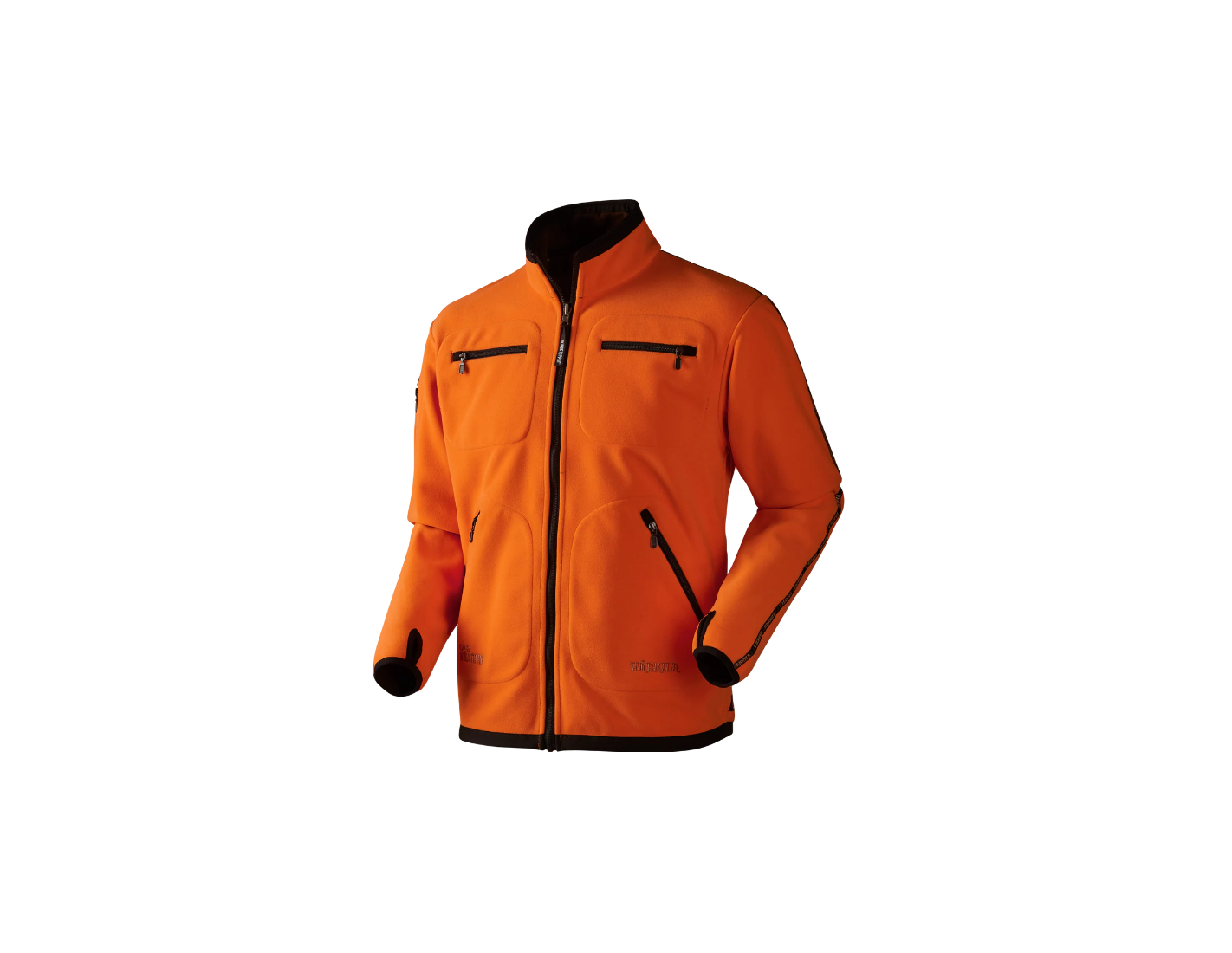 Chaqueta reversible en forro polar técnico, con membrana GORE WINDSTOPPER® a prueba de viento y transpirable, dos bolsillos para radio, bolsillo para manga, bolsillos laterales y dobladillo con cordón. En un color verde / naranja para aumentar la visibilidad cuando sea necesario.