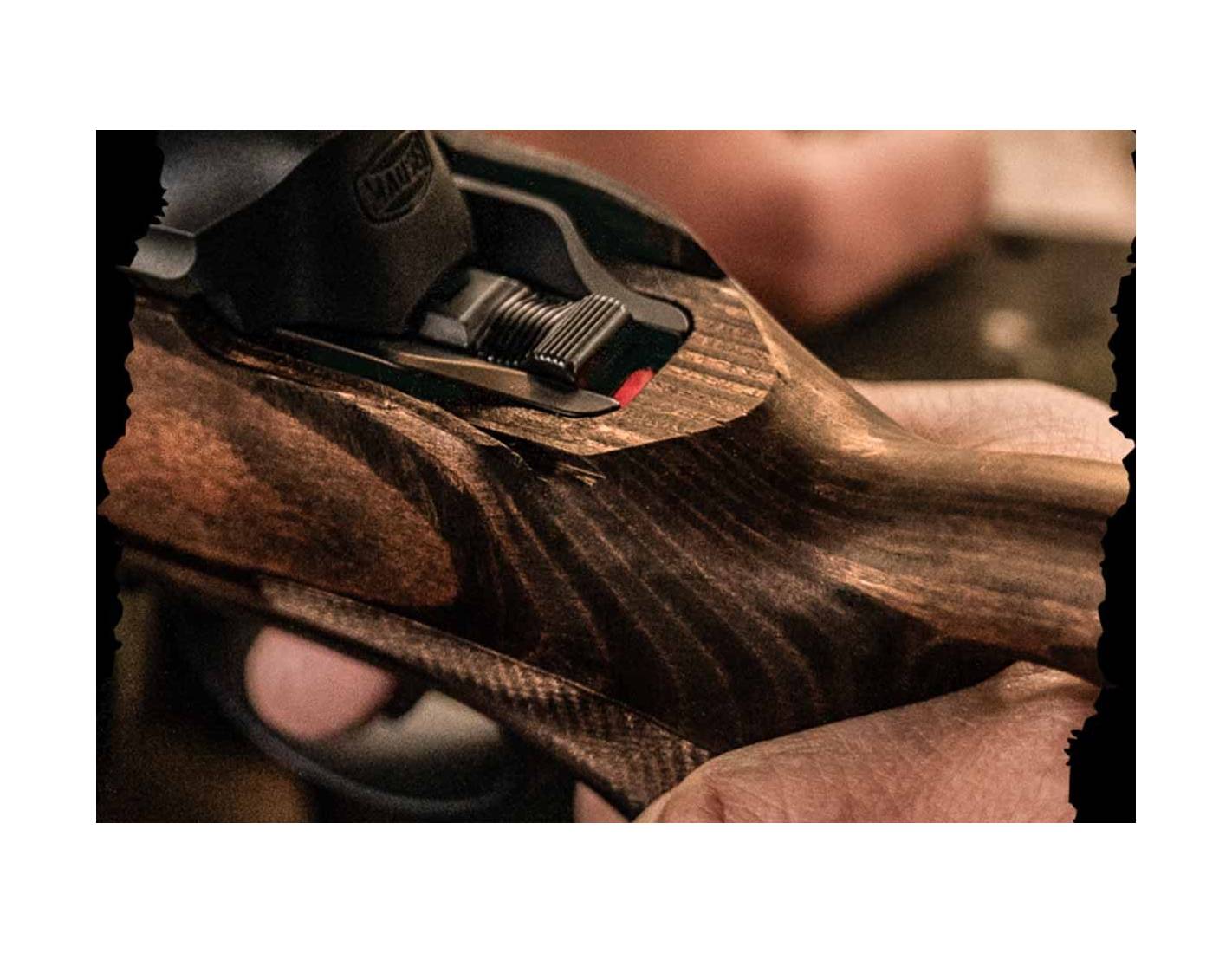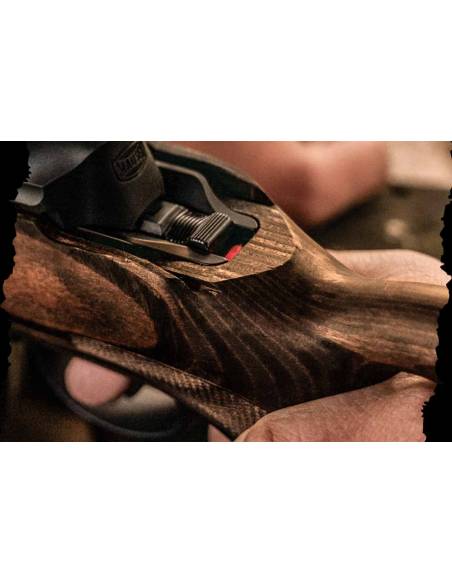 La empuñadura recta del cerrojo está ubicada ergonómicamente sobre el gatillo para una repetición más rápida y sin lujos. El seguro de dos posiciones actúa directamente sobre el percutor y se puede controlar fácilmente con la mano. Diseñado para un funcionamiento intuitivo y silencioso. El seguro permitirá cargar y descargar en MODO SEGURO.