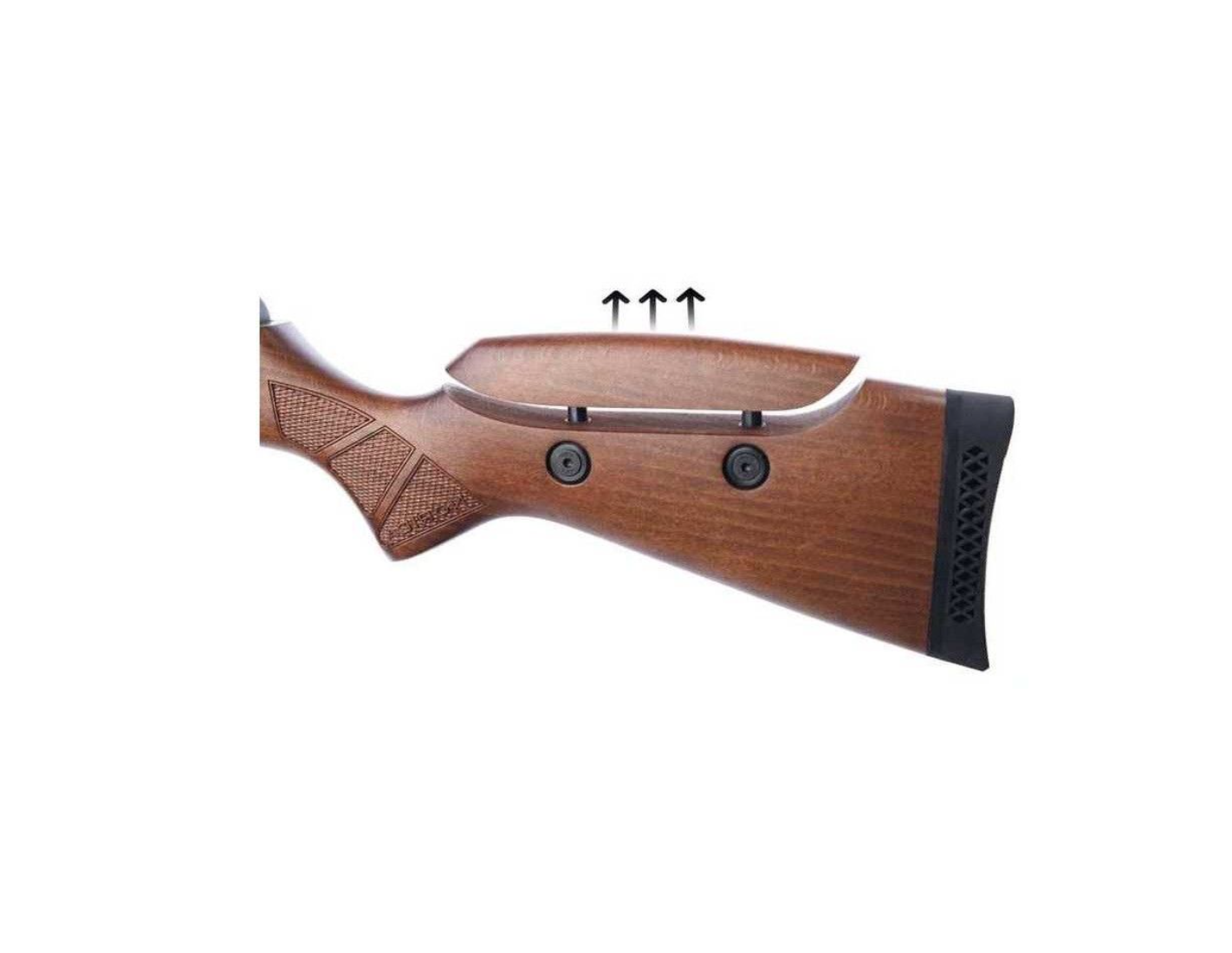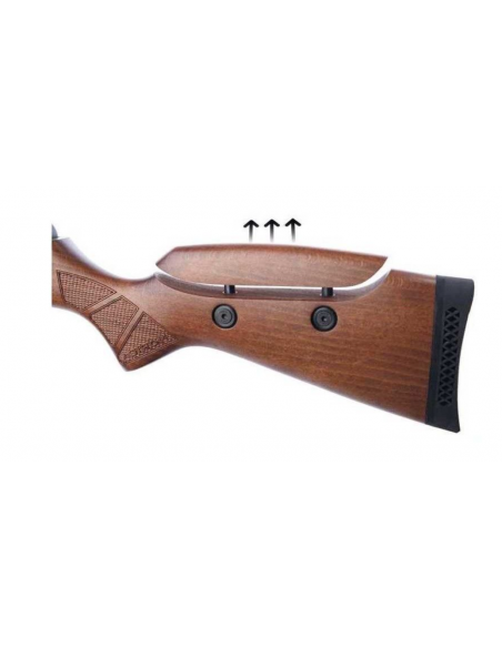 Carabina con cuerpo fabricado en madera de haya, carrillera ajustable, con cantonera de goma ventilada para una reducción eficaz del retroceso.