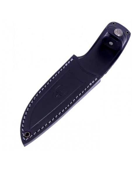 El PHANTOM-12W está diseñado con estructura enteriza, lo que garantiza solidez y equilibrio entre hoja y empuñadura. Se acompaña de una funda de piel de alta calidad, práctica para proteger el cuchillo y facilitar su transporte seguro en cinturón.