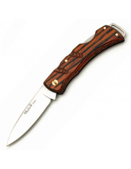 La Muela K-7R es una navaja EDC compacta, con cachas de madera coral veteada y sistema Back Lock. Ideal para llevar siempre contigo.