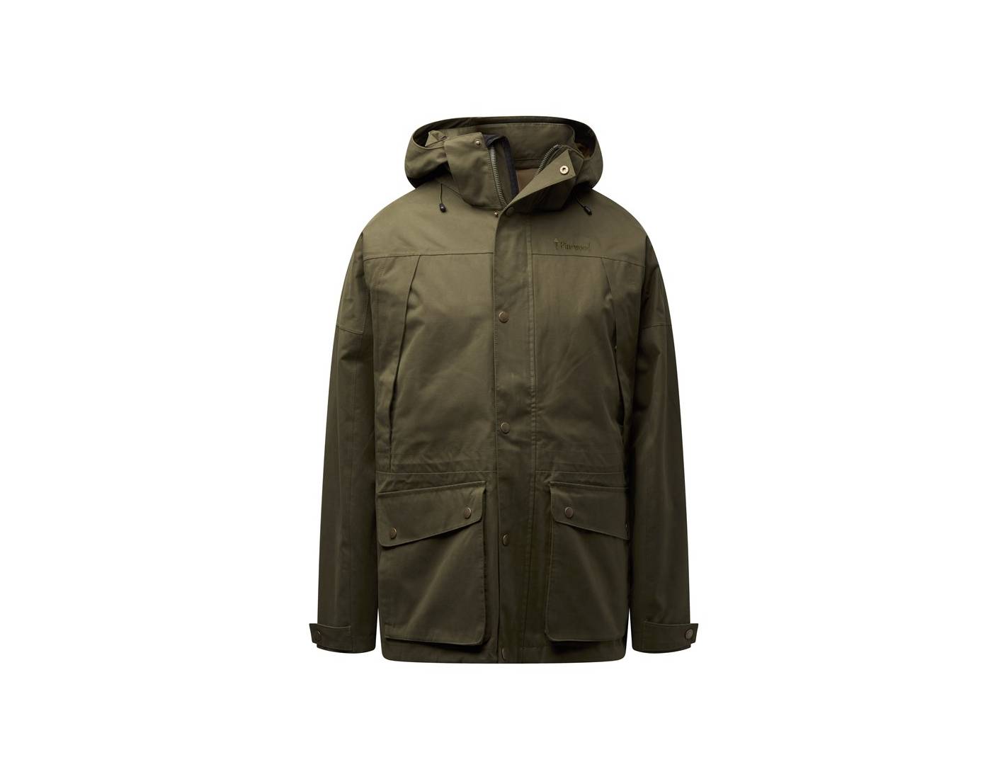 Chaqueta de caza para hombre de diseño atemporal, perfecta tanto para la caza en batida como para después de la caza o para el uso diario. Diseñada para afrontar las inclemencias del tiempo, es a la vez cortaviento e impermeable, gracias a un tejido de 2 capas con una membrana protectora, costuras selladas y un tratamiento repelente al agua DWR en la superficie exterior.