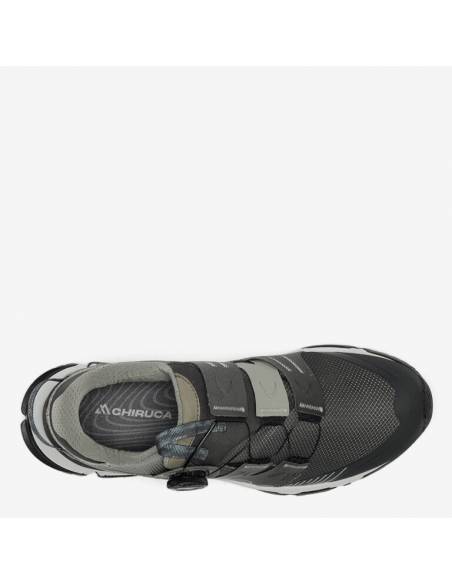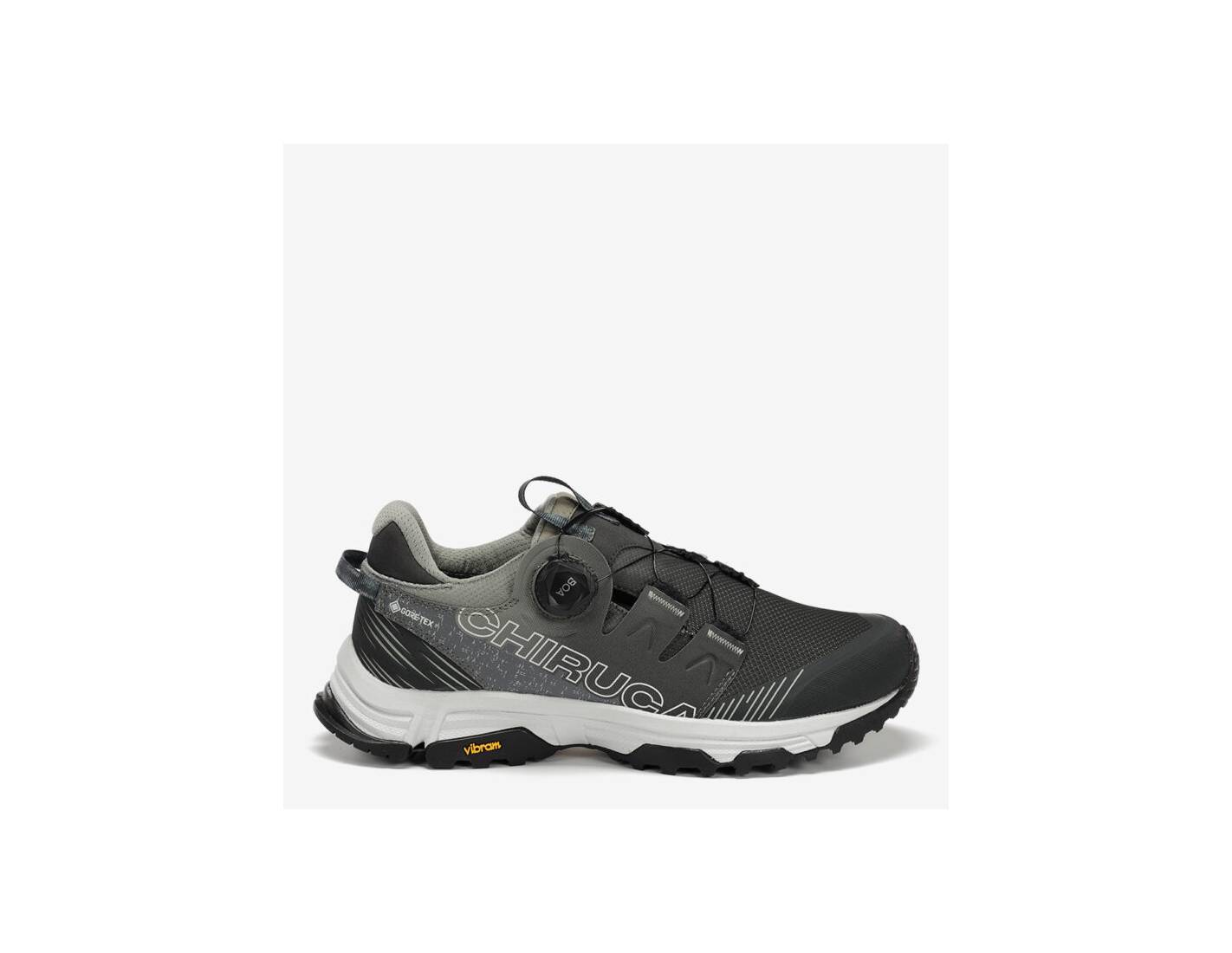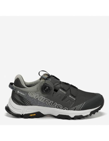 Adecuada para terrenos poco escarpados y senderos. Modelo de alta gama textil, con detalles en alta frecuencia, sistema BOA® Fit System, refuerzo en puntera, con membrana Gore-Tex impermeable y transpirable; entresuela de phylon y suela Vibram® Megagrip que proporciona amortiguación y gran adherencia.