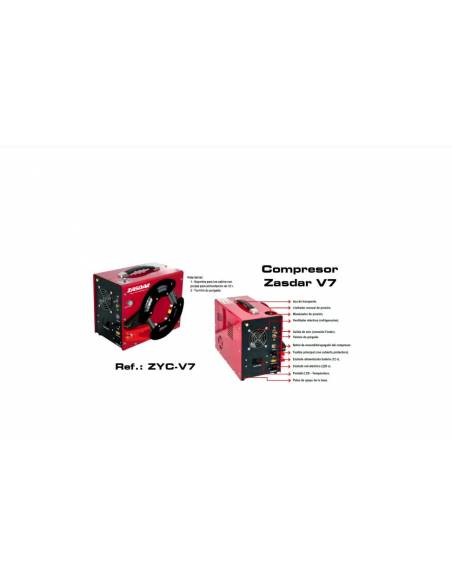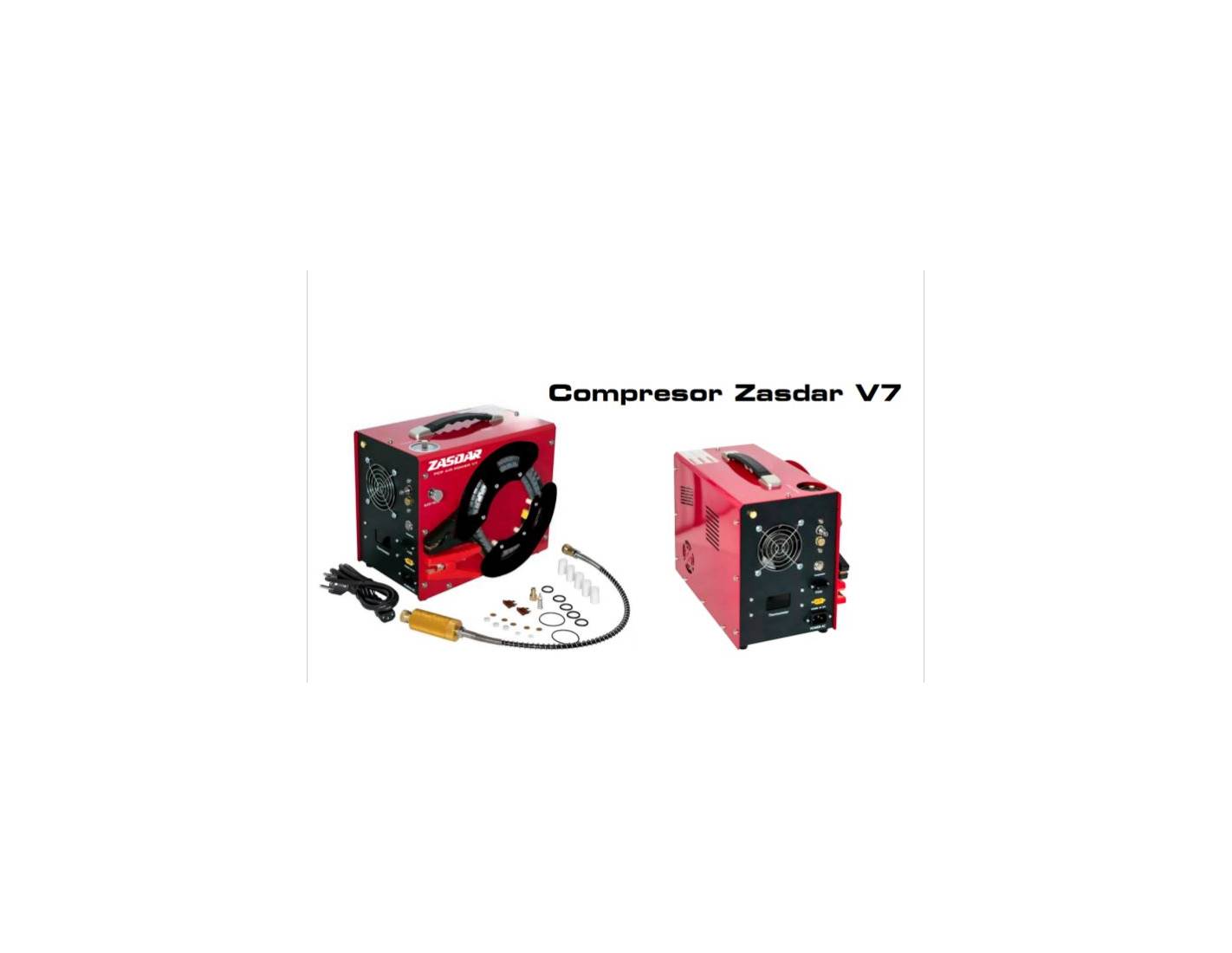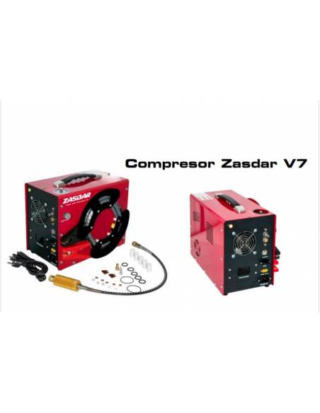 Compresor Eléctrico ZASDAR V7 a 12 v/220 v. PCP 300 BAR. Transformador incluido. Parada automática.