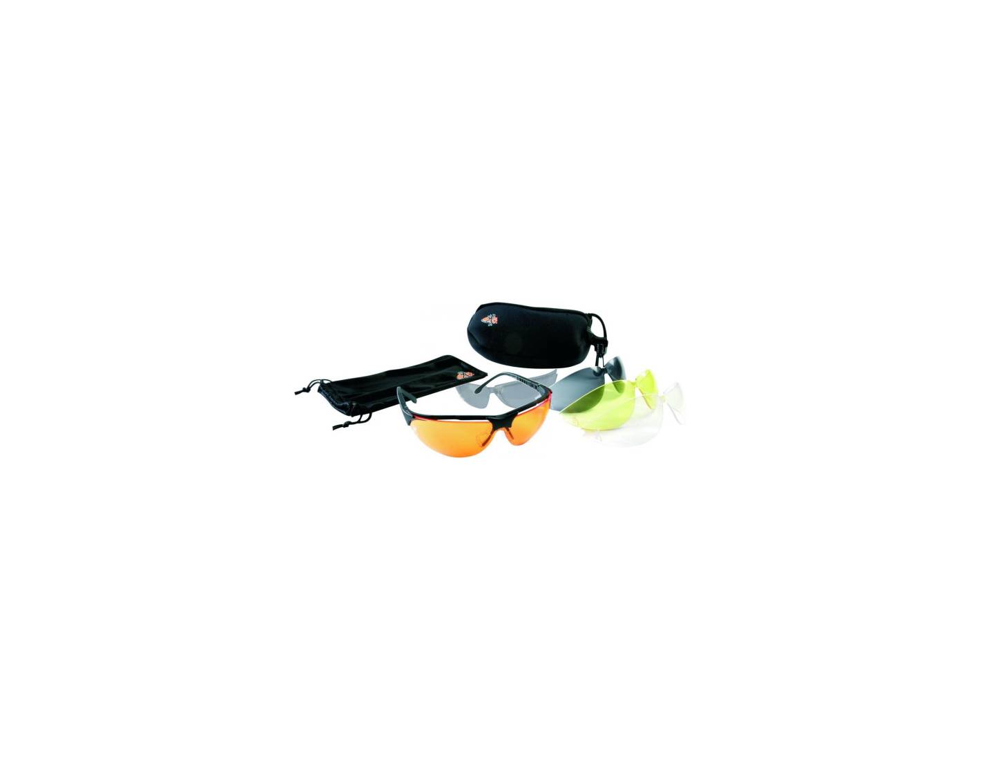 Gafas de protección Browning Claymaster con 5 lentes intercambiables: amarilla, transparente, oscura, naranja y azulada. Lentes de policarbonato con protección ante impactos a alta velocidad. Incluyen un estuche de neopreno, funda de microfibra y una cinta para sujetar las gafas.