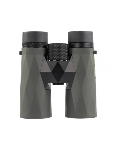 Prismáticos con lentes de cristal ED para la reducción de aberración cromática y mayor contraste de imagen. Con diseño geométrico, resistente y cómodo de sujetar.