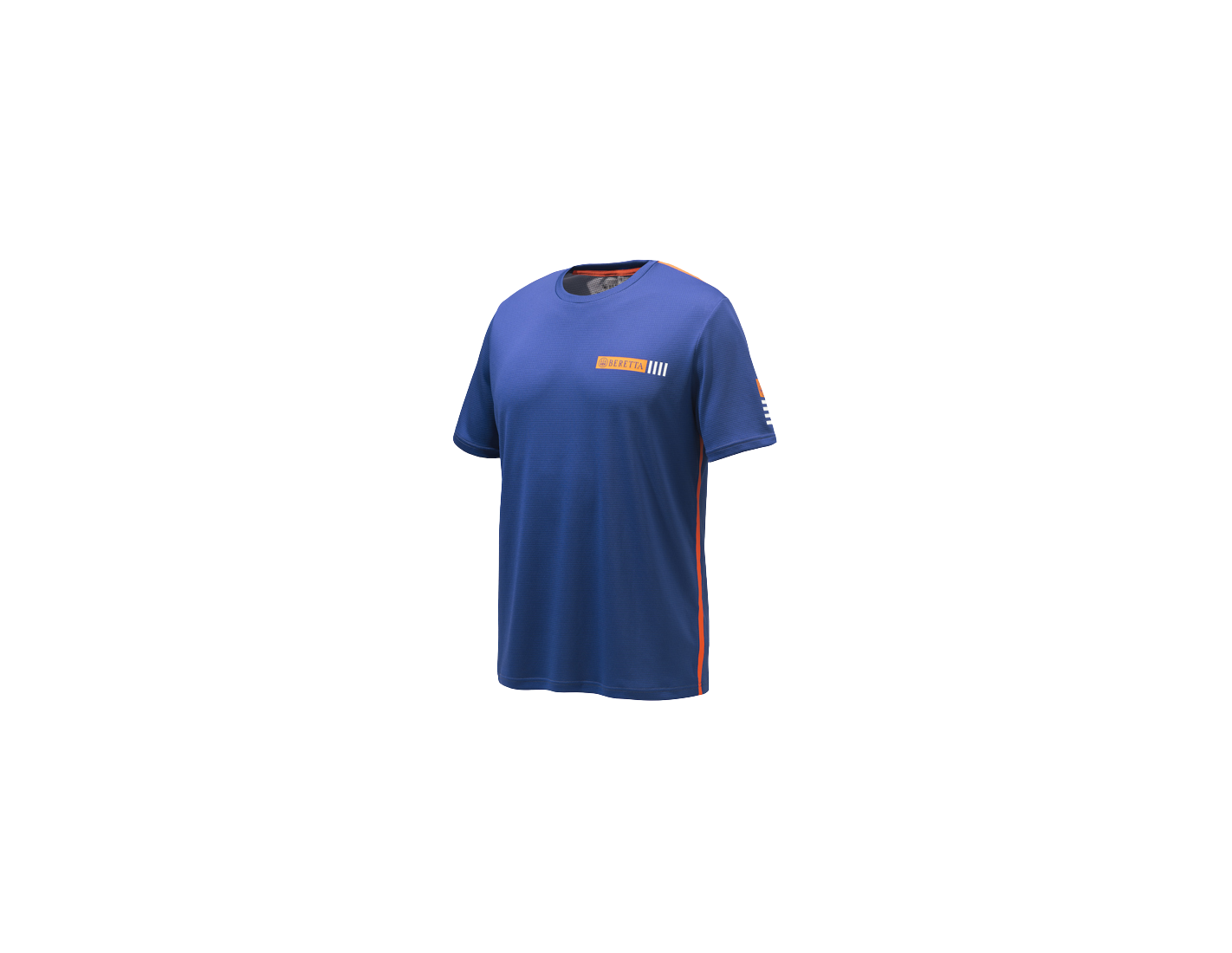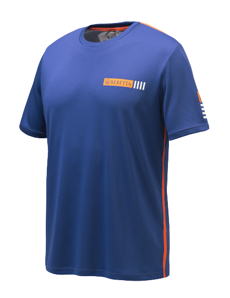 Camiseta de tiro Beretta Stripe azul, cómoda y transpirable. Diseño deportivo con estilo moderno, ideal para entrenamientos o uso casual.